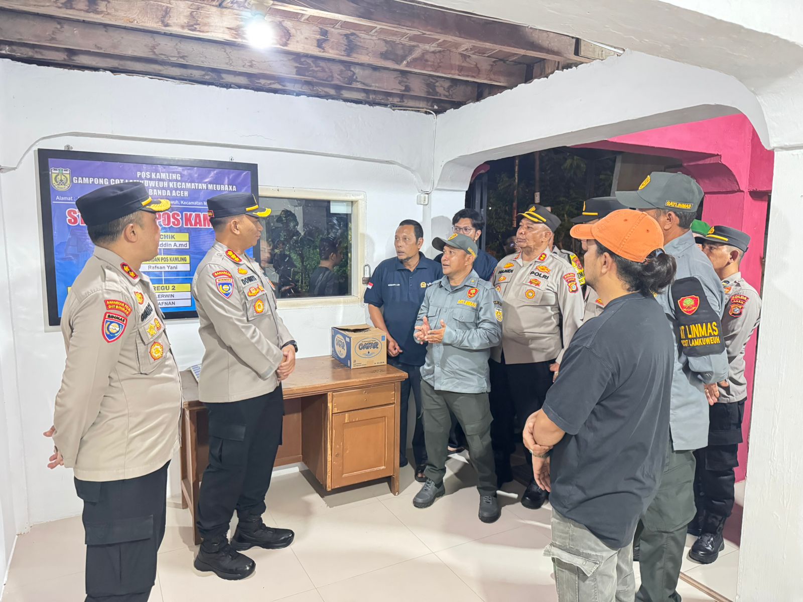 Dalam kegiatan tersebut, Kombes Donny yang didampingi Wadir Binmas Polda Aceh, AKBP Dhani Catra Nugraha beserta personel menyampaikan bahwa, kehadirannya bertujuan untuk memastikan Pos Satkamling tetap aktif sebagai pusat kegiatan bersama dalam menjaga keamanan lingkungan masyarakat.