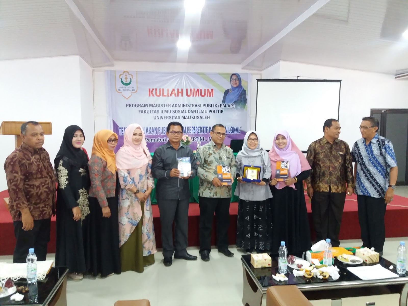 Turut hadir pada acara itu ketua jurusan Magister Administrasi Publik DR. Muhammad dan sejumlah Dosen Pasca Sarjana, civitas akademik, serta seratusan mahasiswa pasca sarjana Universitas Malikusaleh Lhokseumawe pada acara tersebut. Usai acara DR. Kismartini berbagi buku, kemudian dilanjutkan oleh ketua jurusan DR. Muhammad menyerahkan plakat sebagai cendera mata kepada pemateri yang juga dosen tamu mata kuliah analisis kebijakan publik. (My).