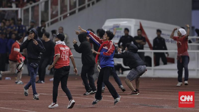 Share Facebook Twitter LinkedIn Pinterest WhatsApp Email rilisNET, Jakarta – Suporter Timnas Indonesia rusuh usai tim idolanya menelan kekalahan 2-3 dari Malaysia pada Kualifikasi Piala Dunia 2022 di SUGBK, Jakarta, Kamis (5/9), (CNN /Jun). Baca Juga : Klasemen Sementara PORA Pidie, Aceh Timur Raih 38 Medali