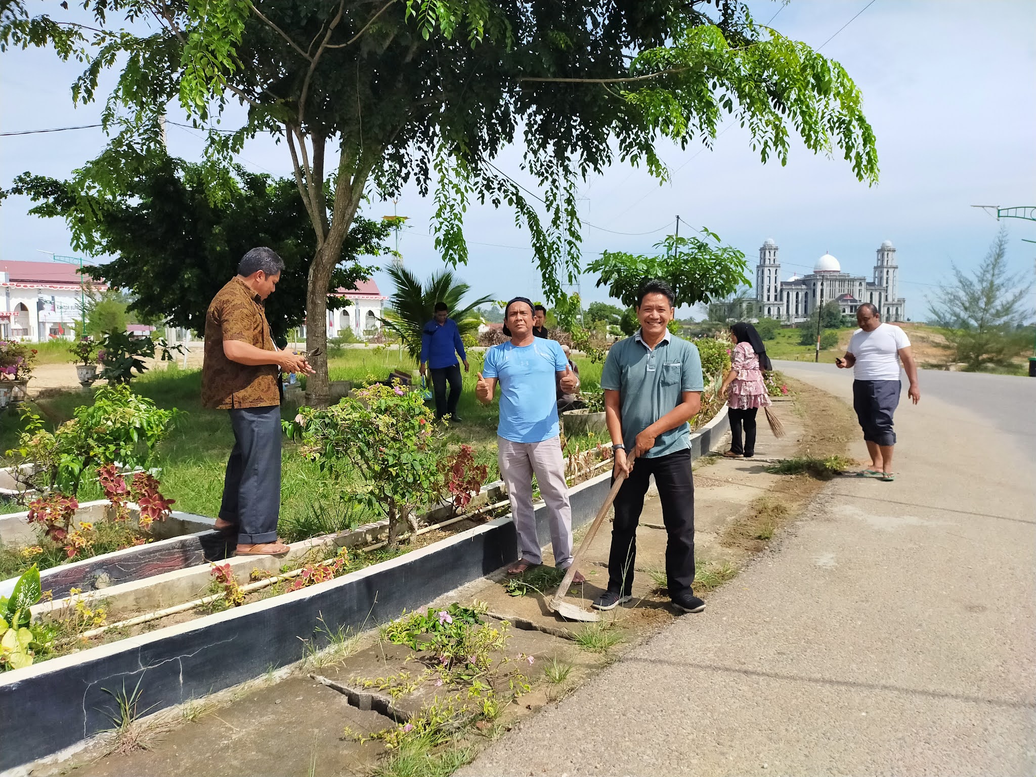 Sekda Aceh Timur Ir Mahyuddin MSi juga ikut dalam kegiatan ini, selain itu sejumlah Asisten, para kepala OPD juga tampak berbaur dengan para staf ASN dalam kegiatan gotong-royong tersebut.