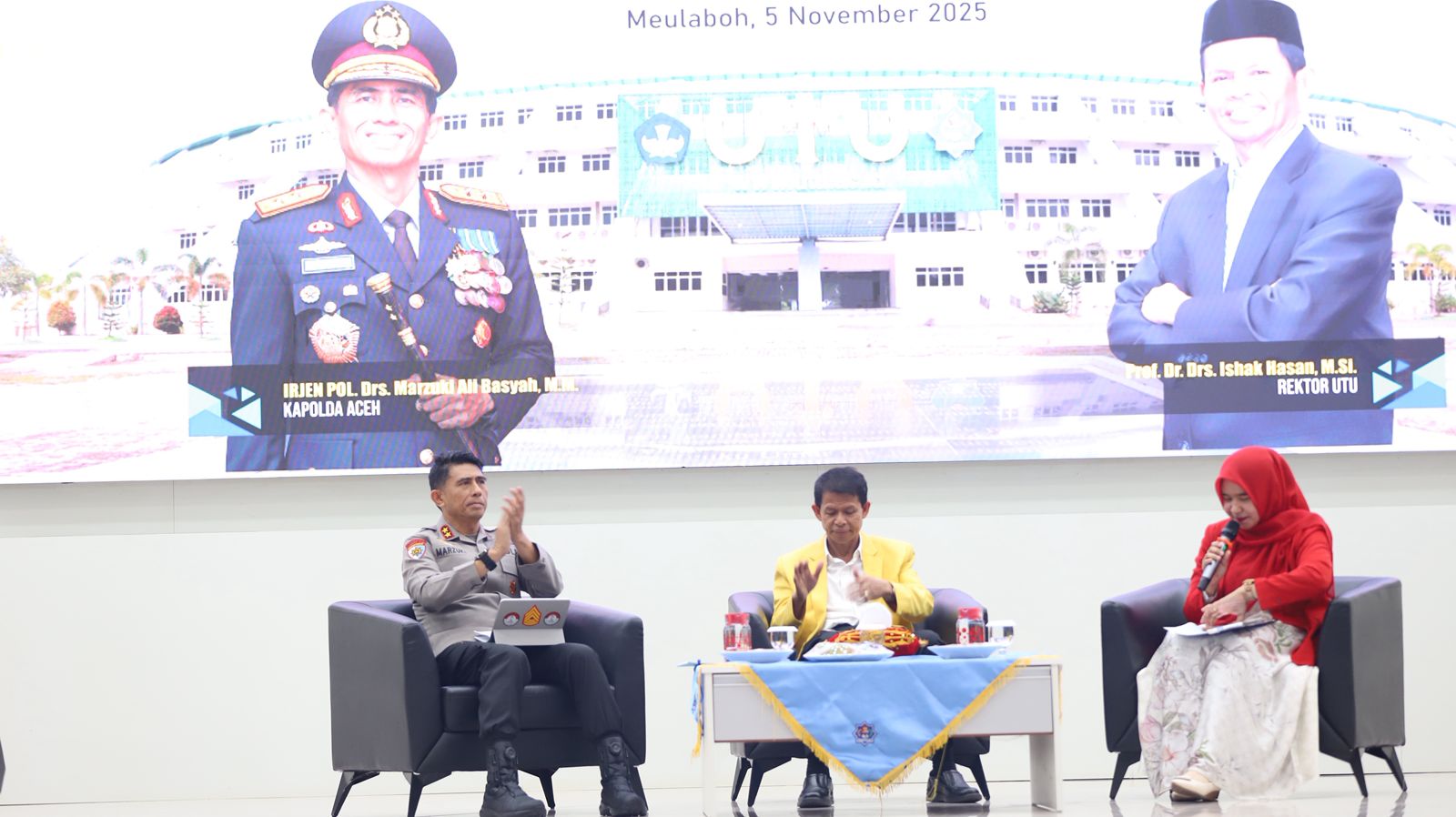 RILIS.NET, ACEH BARAT – Kapolda Aceh Irjen Pol. Drs. Marzuki Ali Basyah menjadi narasumber dalam Kuliah Umum se-Barat Selatan Aceh yang digelar di Auditorium Universitas Teuku Umar (UTU), Kecamatan Meureubo, Kabupaten Aceh Barat, Rabu, 5 November 2025.