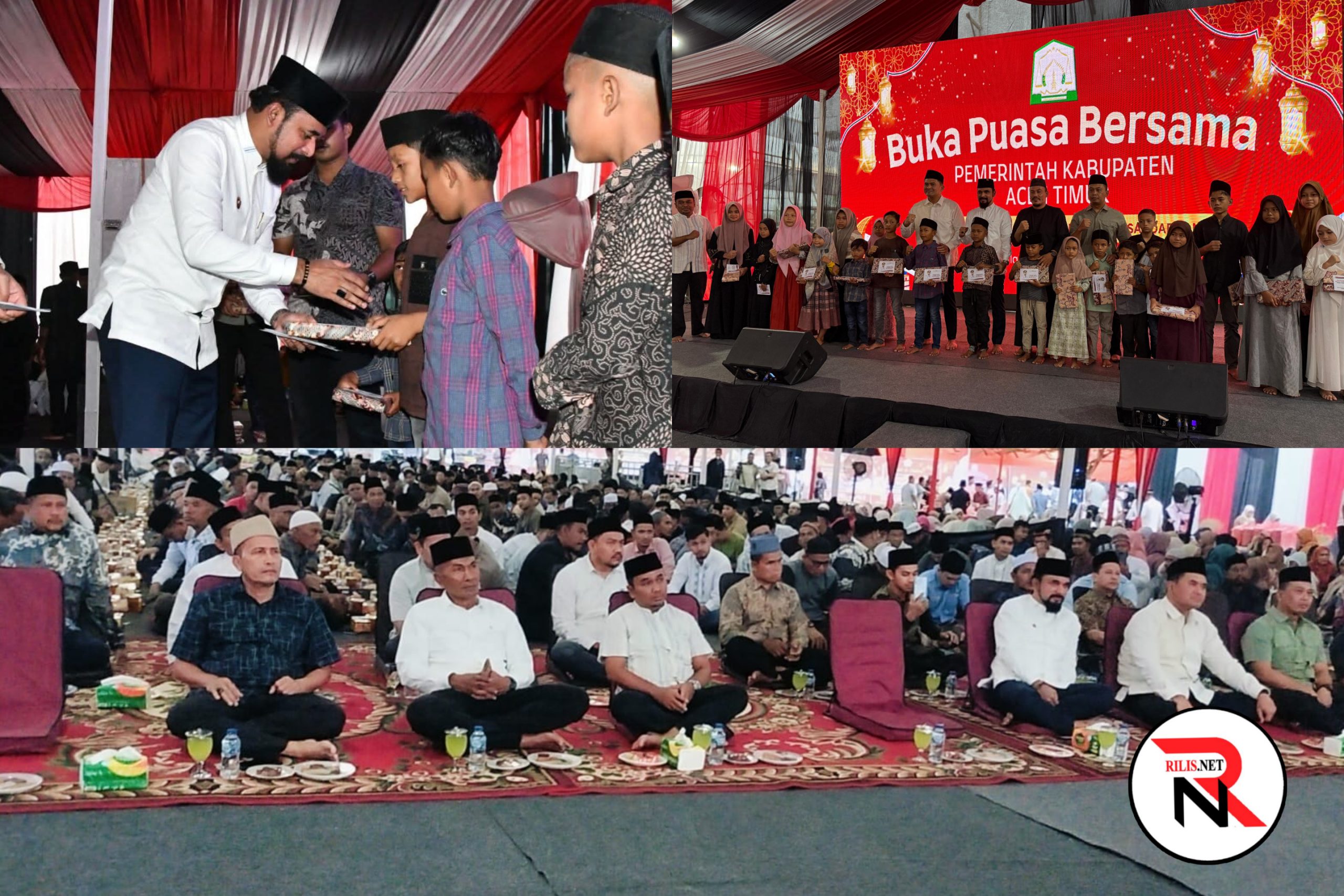 RILIS.NET, ACEH TIMUR – Pemerintah Kabupaten Aceh Timur menggelar acara buka puasa bersama sekaligus menyantuni 200  orang anak yatim, kegiatan ini digelar dihalaman depan Pendopo Peureulak, Sabtu (14/3/2026).