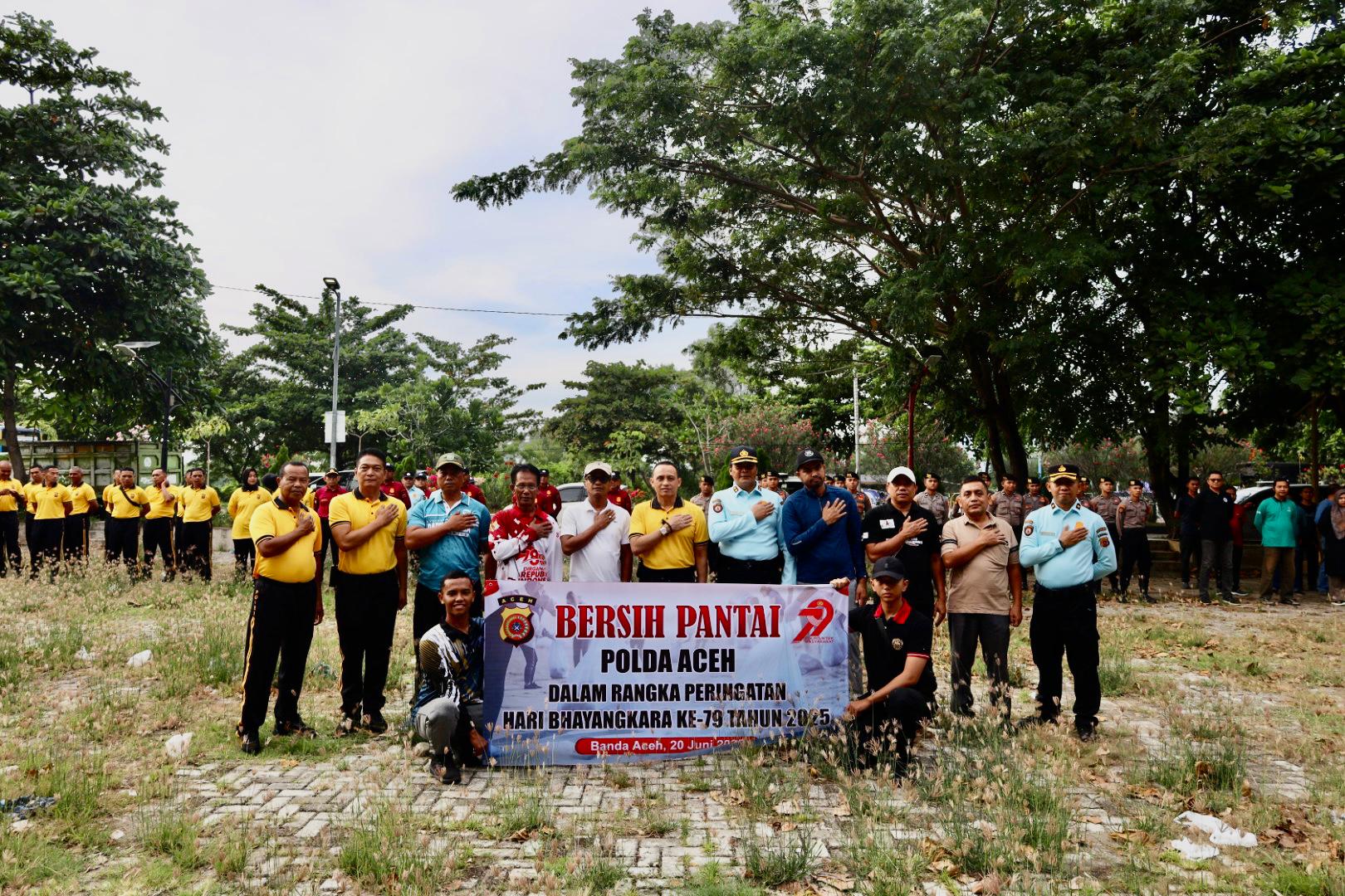 Sambut Hari Bhayangkara, Polda Aceh Gelar Aksi Bersih Pantai di Ulee Lheue