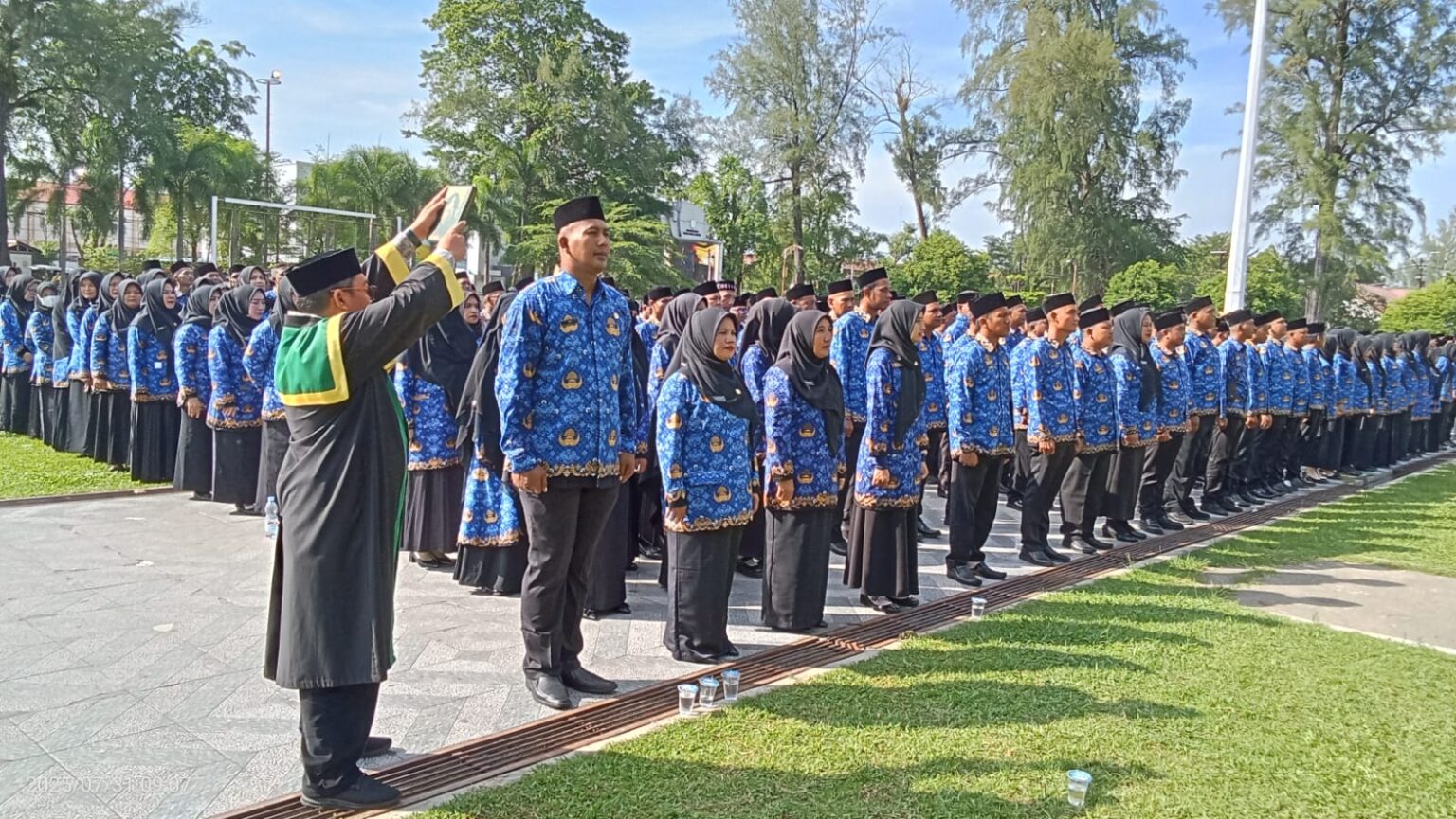 RILIS.NET, LANGSA – Sejumlah 1.168 Pegawai Pemerintah dengan Perjanjian Kerja (PPPK) Formasi 2014 di lingkungan Pemko Langsa, Dilantik oleh Walikota Jefri Sentana, di Tribun Lapangan Merdeka setempat, Kamis (31/7/2025).