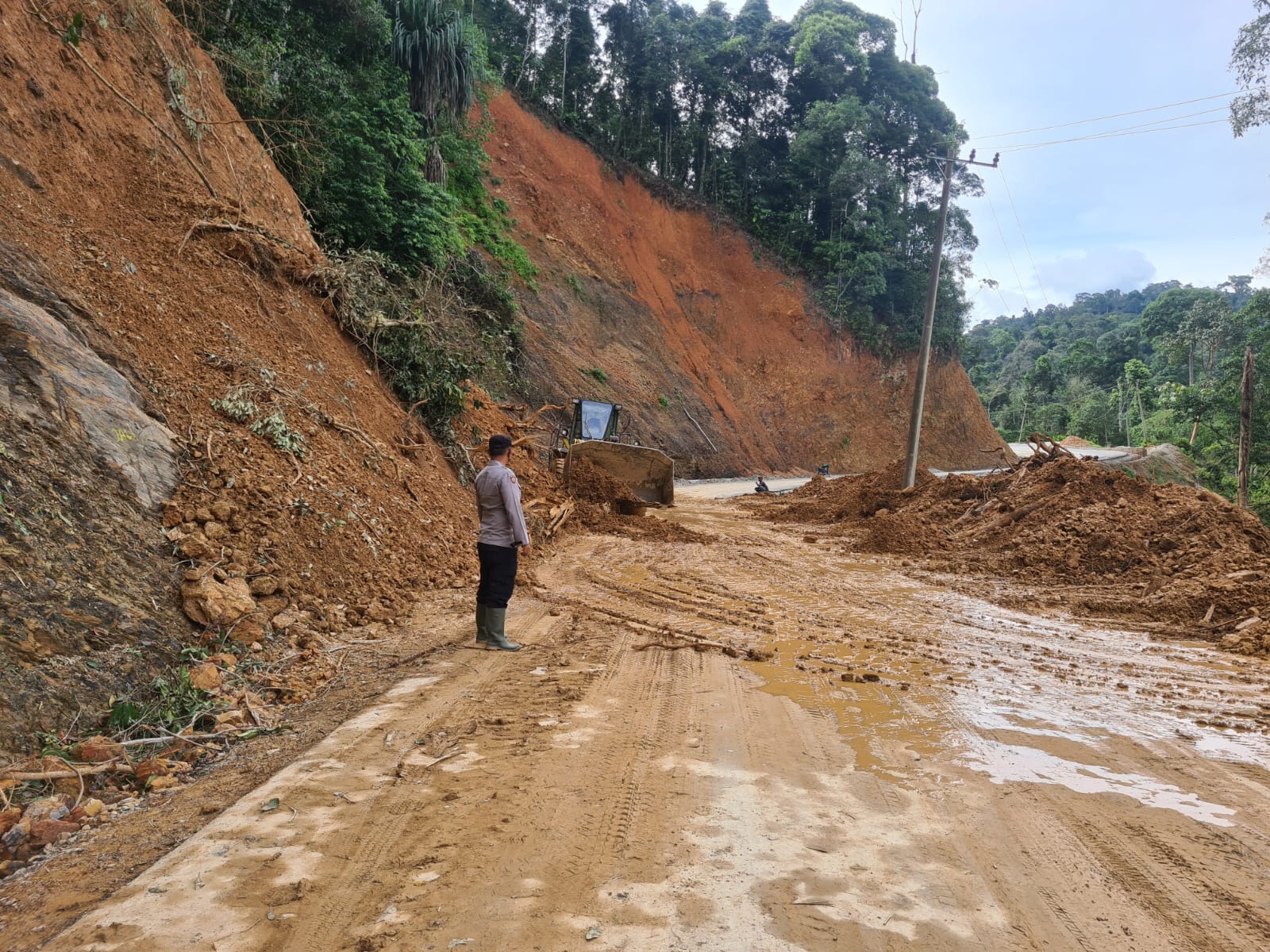 Usai terjadi longsor, Pj Bupati Aceh Timur Ir Mahyuddin MSi langsung memerintahkan dinas terkait untuk menangani longsor agar arus transportasi yang digunakan oleh masyarakat setempat kembali normal.